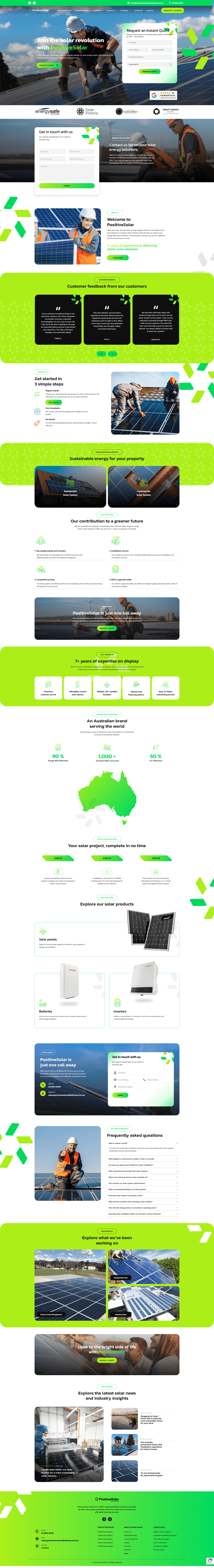 The Positive Solar & Batteries site showcases a modern, professional layout designed to highlight solar and energy storage solutions clearly and effectively. Built using WordPress with Thrive Architect under Hype Invention (Hype Insight Global), the page integrates visually compelling sections featuring products (solar panels, inverters, batteries), customer testimonials, and easy navigation between commercial and residential offerings. Emphasis is placed on user experience: clear calls-to-action like βRequest a Quote,β intuitive menu structure, and trusted credibility through CEC and NETCC approvals. The responsive design ensures seamless viewing across devices, while optimizing for speed and clarity. PPC alignment and visual hierarchy guide users toward inquiry, reinforcing the company’s reputable positioning in sustainable energy solutions.